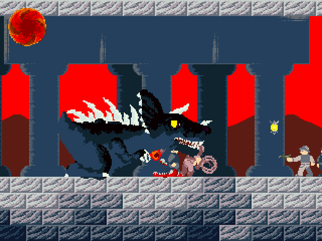 My entry stars a dinosaur who hatches from an ancient egg within a temple, and tries to escape, through throngs of archaeologists. A bit of a role reversal from most games, the player must tear the archaeologists to shreds as they scramble for whatever weapons they can find to fend off the fearsome beast.